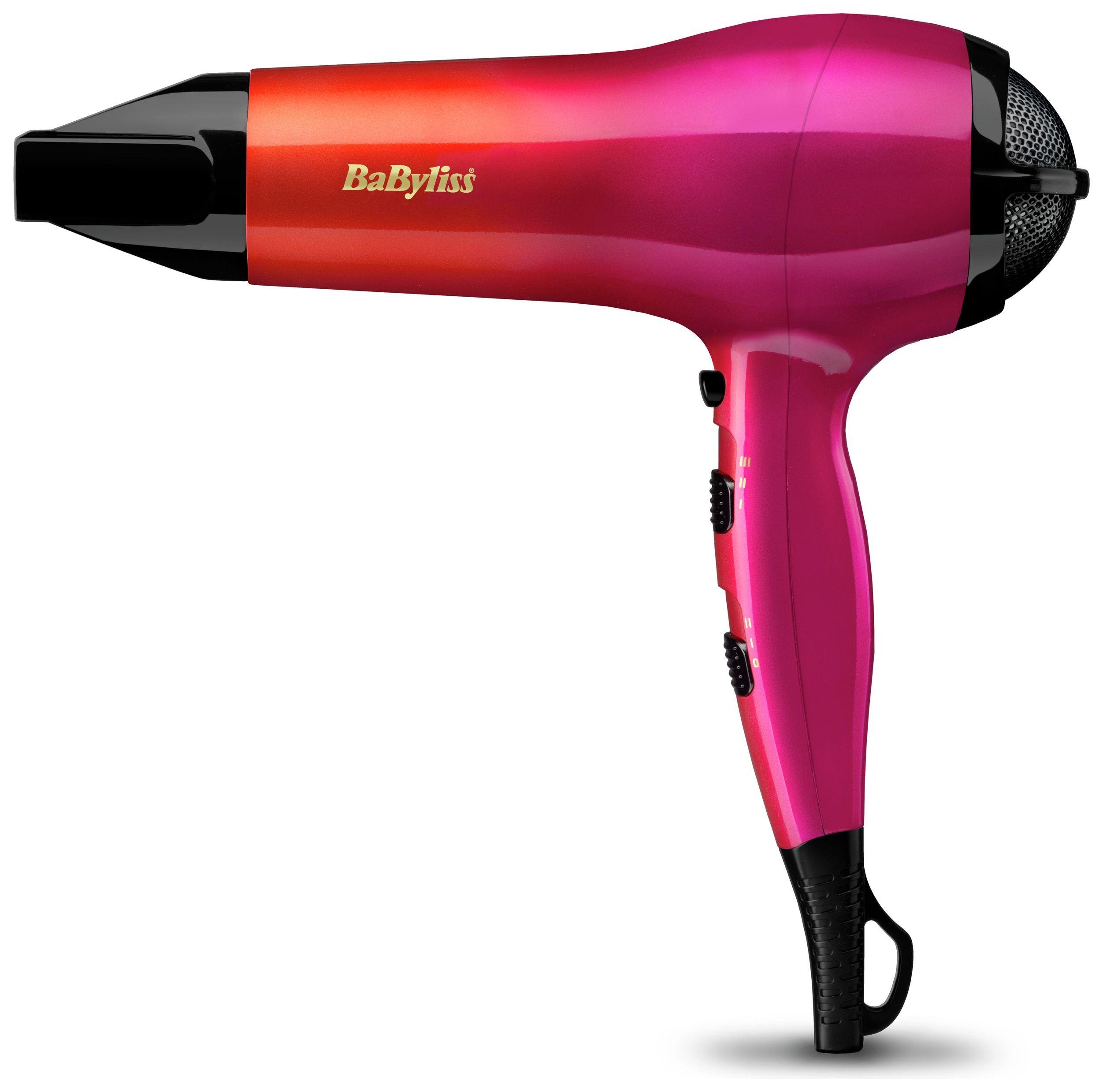 I have the special edition babyliss ombre hairdryer pink and orange and i love it. I have thick, frizzy and wavy hair and it only takes around 10 minutes to fully dry my hair which is fantastic. November 9th 2016, 12:32 am. Most people purchase a hair dryer because they want to be able to dry their hair quickly after they've washed it. Its really light and easy to use and i love to finish of with a shot of the cool to tame the frizz which without using any products works really well. Babybliss pro is a great brand and worth the extra money. Ionic technology can be switched on for softer, shinier hair while reducing frizz. Well, that and every beauty editor's favourite 'fake a blow dry' tool, the big hair. The babyliss hair dryer's size and weight that you choose should be comfortable for you to use effortlessly. My old dryer would get very hot and dry the outside of my hair without penetrating to the hair underneath so it would take forever to get it all dry and i would be sweating afterwards. They rigorously judged speed of drying hair, ease of use. Babyliss is known for its affordable and varied hair styler selection. Babyliss ombre 2400w hair dryer 3 heat / 2 speed setting plus cool shot ionic technology.